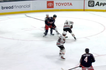 Zach Werenski atterrit sur la jambe de Wyatt Kaiser et il faut l’aider à rentrer aux vestiaires — mcosta1973