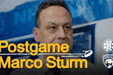 L’entraîneur-chef des Bruins, Marco Sturm, s’entretient avec les médias après la défaite des Bruins face aux Panthers de la Floride…