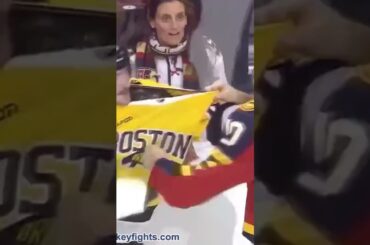 L’attaquant des Bruins de Boston Tanner Jeannot et l’attaquant des Panthers de la Floride AJ Greer lâchent les gants pour…