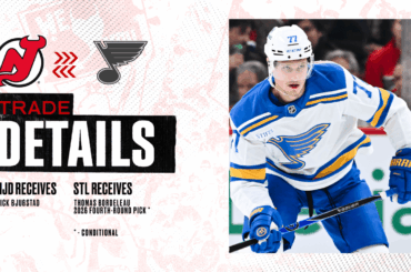 Nous avons acquis l’attaquant Nick Bjugstad des Blues de St. Louis en retour de l’attaquant Thomas Bordeleau et un choix…