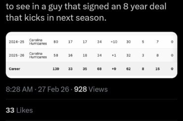 Les Hurricanes de la Caroline ont battu les Red Wings de Détroit 5-2 le 28 février 2026. Taylor Hall et…