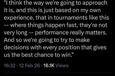 [Johnston] Jon Cooper dit que Josh Morrissey manquera également le match de dimanche contre la France, mais pense qu’il sera…