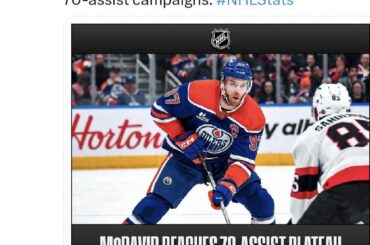 [NHL Public Relations] McDavid en compagnie d’élite avec 8 saisons en carrière (6 consécutives) avec 70 passes décisives. — Sens-Fan-85
