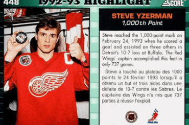 Le 24 févrierème1993, Steve Yzerman franchit une étape importante en enregistrant son 1 000ème point en carrière avec 1 but…