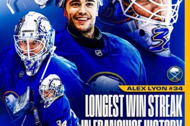 Le gardien des Sabres de Buffalo, Alex Lyon, détient la plus longue séquence de victoires de l’histoire des Sabres –…