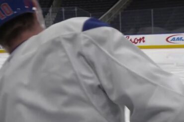 Stuart Skinner est venu rencontrer certains de ses anciens coéquipiers lors de l’entraînement facultatif aujourd’hui. — Puzzled-Category-954