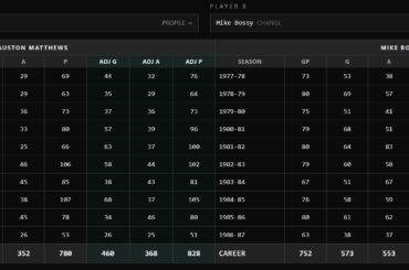 Même si j’en ai un couple "années en baisse"Matthews égale toujours Bossy pour les buts ajustés à l’époque en beaucoup…