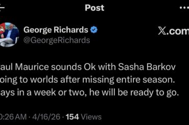 [George Richards] Paul Maurice a l’air bien avec Sasha Barkov qui se rend aux mondiaux après avoir raté toute la…