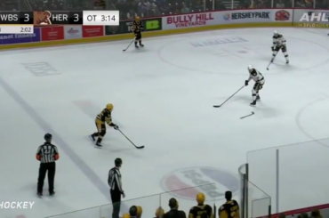Lors de son premier match à Wilkes-Barre, Avery Hayes complète le tour du chapeau en prolongation avec un bâton cassé.…