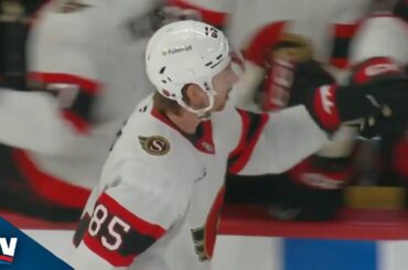 Regardez Jake Sanderson des Sénateurs d’Ottawa se frayer un chemin devant Noah Dobson avant de passer à son revers pour…