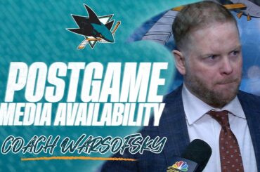 L’entraîneur Warsofsky s’adresse aux médias après la victoire 4-1 des Sharks contre les Panthers de Floride le 19 janvier 2026.