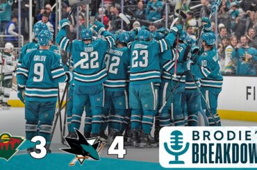 Brodie Brazil décompose la victoire 4-3 des Sharks en tirs de barrage contre le Wild du Minnesota le 31 décembre…