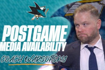 L’entraîneur Warsofsky s’adresse aux médias après la défaite 7-2 des Sharks contre les Golden Knights de Vegas le 23 décembre…