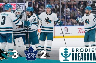Brodie Brazil brise la victoire 3-2 en prolongation des Sharks contre les Maple Leafs de Toronto le 11 décembre 2025.
