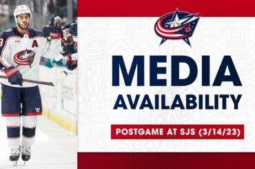 Boone Jenner, Gavin Bayreuther, Johnny Gaudreau et l’entraîneur-chef Brad Larsen s’adressent aux médias après la victoire de 6-5 en prolongation…