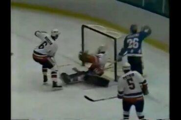Avec seulement 2 secondes restantes dans le 1er OT, Mike Bossy assure la victoire des Islanders de New York sur…