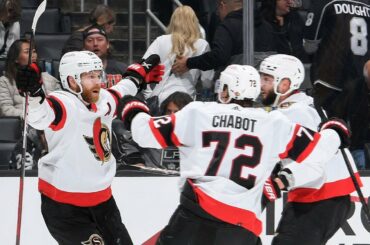 L’attaquant des Sénateurs Claude Giroux surprend les Kings et est largement ouvert, battant Jonathan Quick en échappée pour donner à…