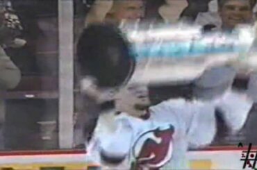 Montage vidéo de la victoire de la Coupe Stanley en 2000 par les Devils du New Jersey, présenté lors de…