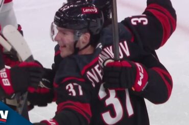 Sebastian AHO marque sur le jeu de puissance 5 contre 3, dessinant les Hurricanes même avec les Devils à 4…