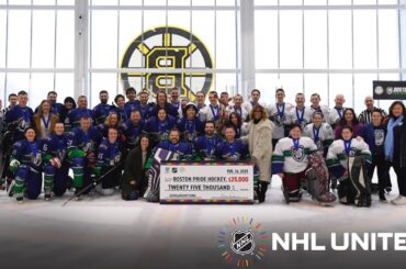 Les membres du hockey de Boston Pride ont pris la glace au centre d’entraînement des Bruins de Boston lors de…