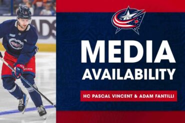 Zach Werenski et l’entraîneur-chef Dean Evason s’adressent aux médias avant le match à domicile de ce soir contre les Bruins…
