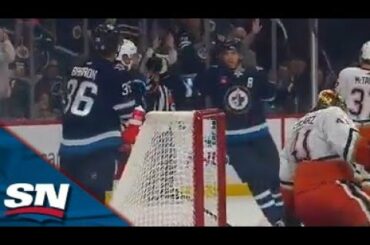 Regardez l’attaquant des Jets de Winnipeg Morgan Barron terminer une belle séquence de passes avec Saku Maenalanen et Adam Lowry…