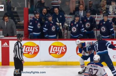 Darnell Nurse contre Adam Lowry des Oilers d’Edmonton au match des Jets de Winnipeg le 4 mars 2023. via https://www.hockeyfights.com