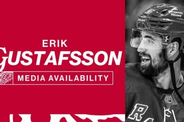 Le nouveau défenseur des Red Wings, Erik Gustafsson, s’adresse aux médias après avoir rejoint l’équipe via l’agence libre le 1er…