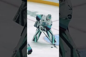 Le gardien du Kraken, Joey Daccord, avec le joli plat qui mène à un but en désavantage numérique, donnant au…