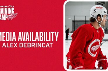L’attaquant des Red Wings Alex DeBrincat parle avec les médias après le deuxième jour du camp d’entraînement de Détroit au…