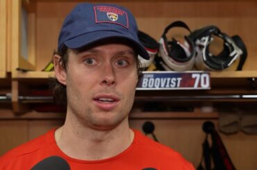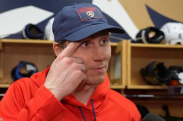 L’attaquant des Panthers de la Floride Carter Verhaeghe rencontre les médias après avoir marqué deux fois en 1 min 30…