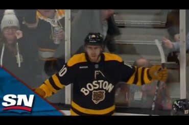 Regardez le gardien de but des Bruins de Boston, Linus Ullmark, effectuer quelques arrêts clés et AJ Greer répond en…