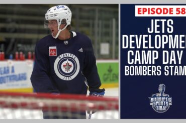 L’animateur Matthew Zator accueille l’écrivain des Jets de Winnipeg Connor Hrabchak à la table ronde des écrivains de hockey pour…
