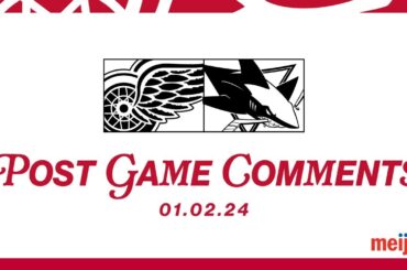 Alex Lyon et Derek Lalonde parlent avec les médias suite à la victoire 5-3 de Détroit contre les Sharks de…