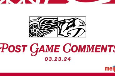 Moritz Seider, Alex Lyon et Derek Lalonde parlent aux médias après le match de Détroit contre les Predators de Nashville…