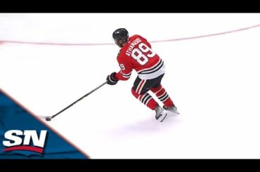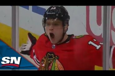 Regardez l’attaquant des Blackhawks de Chicago Max Domi forcer un revirement et claquer le coin supérieur devant le gardien des…