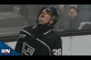 Regardez le gardien des Canucks de Vancouver Thatcher Demko montrer son gant pour priver l’attaquant des Kings de Los Angeles…
