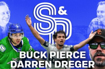 Matt et le co-animateur des invités Patrick Johnston discutent des meilleurs cuivres des Canucks sautant la combinaison de scouts de…
