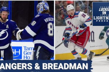 Andrei Vasilevskiy, Ryan McDonagh, Darren Raddysh, Jake Guentzel, Brandon Hagel et Jon Cooper parlent aux médias après la victoire en…