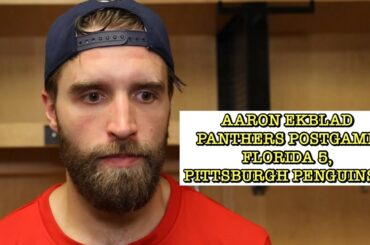 Le défenseur des Panthers de la Floride, Aaron Ekblad, s’exprime après que son équipe a battu l’hôte des Penguins de…