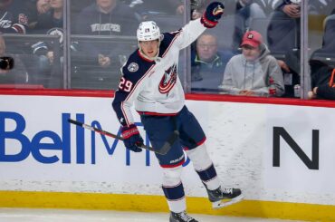 Patrik Laine arrache un but du côté court sur une belle passe de Johnny Gaudreau pour ouvrir le pointage contre…