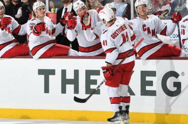 Shayne Gostisbehere marque un but en avantage numérique contre son ancienne équipe, les Coyotes de l’Arizona, lors de son premier…