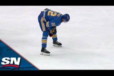 Regardez l’attaquant des St. Louis Blues Logan Brown saigner après un énorme contrôle de la hanche par l’ancien coéquipier Andreas…