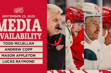 Todd McLellan, Andrew Copp (10:40), Mason Appleton (18:39) et Lucas Raymond (24:14) parlent avec les médias le mardi 23 septembre…