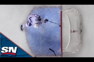 Regardez l’attaquant des Flames de Calgary Andrew Mangiapane se faire créditer d’un but après qu’il a été déterminé lors d’un…