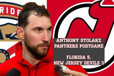 Anthony Stolarz, gardien de but des Panthers de la Floride, parle après que son équipe a battu l’hôte des Devils…