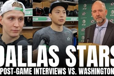 Regardez comment Jason Robertson, Joel Kiviranta et Peter DeBoer réagissent à la victoire des Stars de Dallas contre les Capitals…