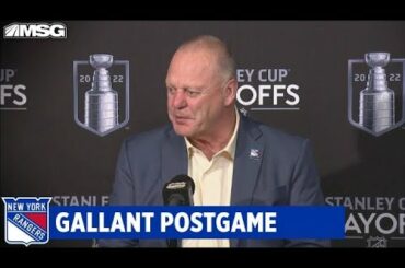 L’entraîneur-chef des Rangers de New York, Gerard Gallant, s’entretient avec les médias après la défaite 4-1 des Rangers contre le…
