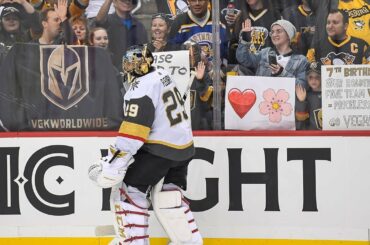 Le gardien de Vegas Marc-André Fleury termine avec 29 arrêts et mène les Golden Knights à une victoire de 3-0…