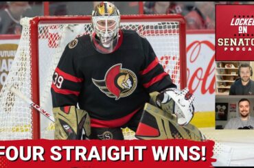 QUATRE VICTOIRES DE SUITE. Ross Levitan et Brandon Piller réagissent au premier départ de Magnus Hellberg avec les Sénateurs d’Ottawa,…